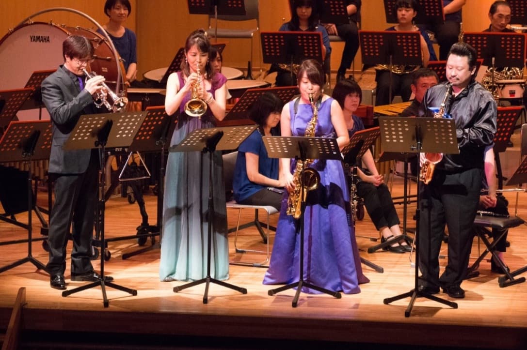 サクソルン属の楽器を4種類集めました。「 Soleil le vent 」 は、フランス語で「太陽と風」という意味です。木管楽器と金管楽器の組み合わせで、新しい風を巻き起こします。吹奏楽などバンドとのジョイントコンサートも実現できます。
