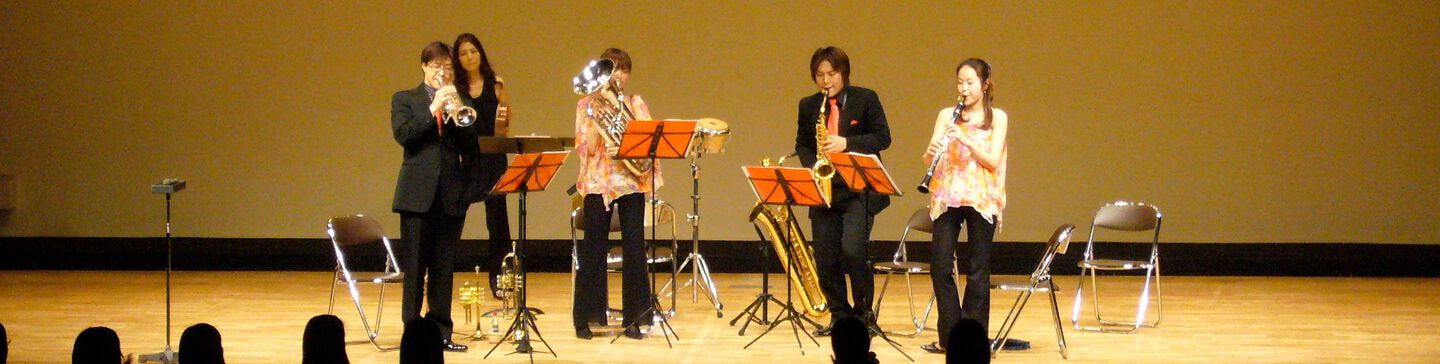 トランペット&クラリネット&ユーフォニアム&サクソフォーンにパーカッションを加えたアンサンブル、木管アンサンブルでも金管アンサンブルでもない、特殊な編成が新しい。